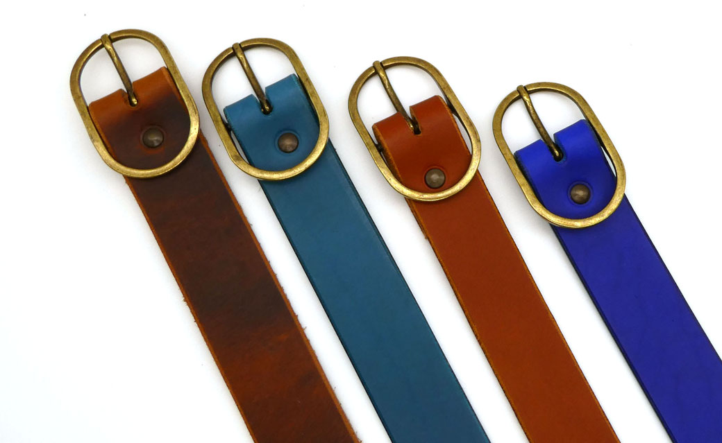 Ceinture en cuir tannage végétal couleur bleu éléctrique, largeur 3cm.