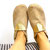 Chaussons en cuir de vachette beige , petit quadrillage doré