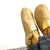 Chaussons en cuir de vachette jaune.